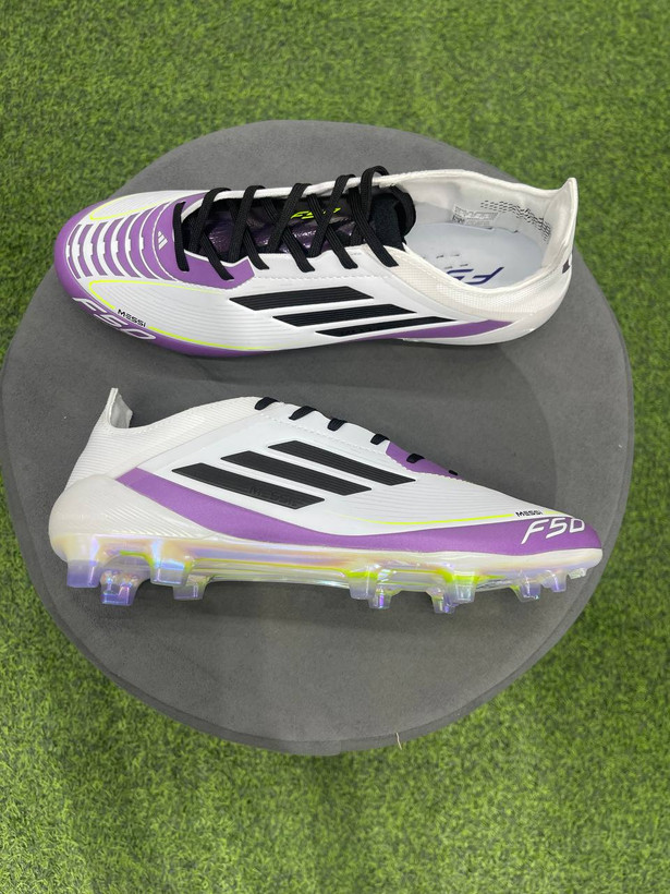 کفش فوتبال ادیداس f50 رنگ اصلی سفید طرح مسی adidas f50 fg