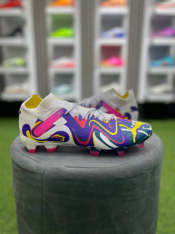 پوما Puma Future 2024 دارای تکنولوژی EvoKnit, NetFit, RapidAgility می باشد.پوما Puma Future 2024 رنگ آن زرد سفیدبنفش مشکی می باشد.