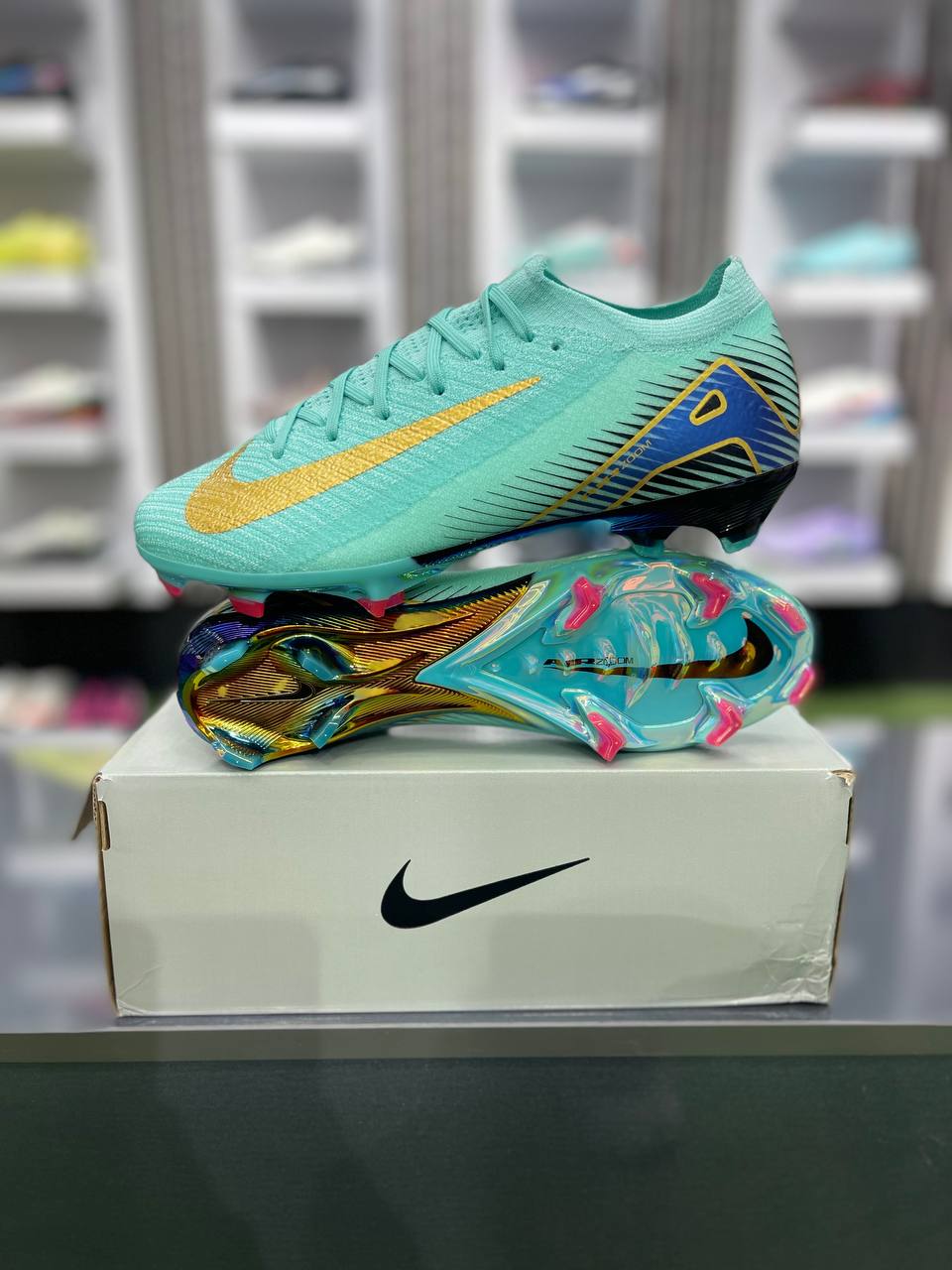 کفش فوتبال نایک مرکوریال ایرزوم ویپور ۱۶ فیروزه ای Nike air Zoom Vapor 16 Elite FG