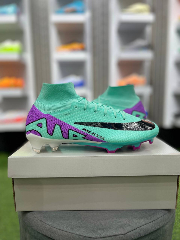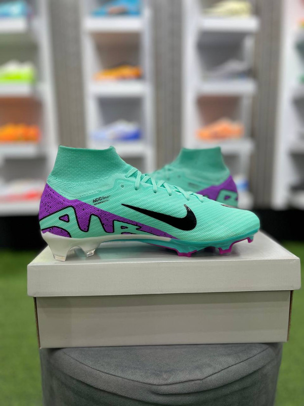 کفش فوتبال نایک ایرزوم ویپور 15مرکوریال سوپرفلای۹ فیروزه ای بچه گانه nike airzoom vapor15 superfly9